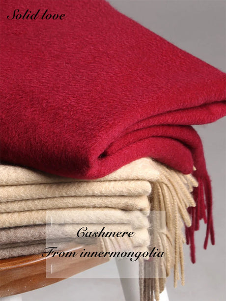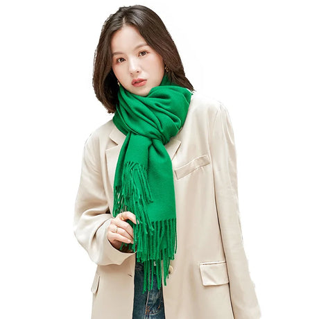 Écharpe longue en cachemire et laine pour femme, châle uni avec pompon