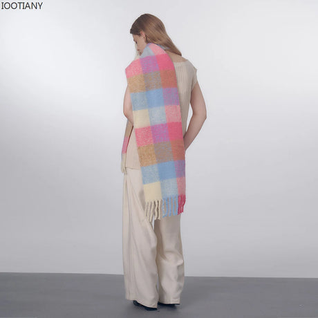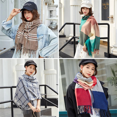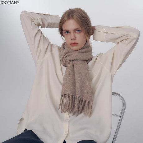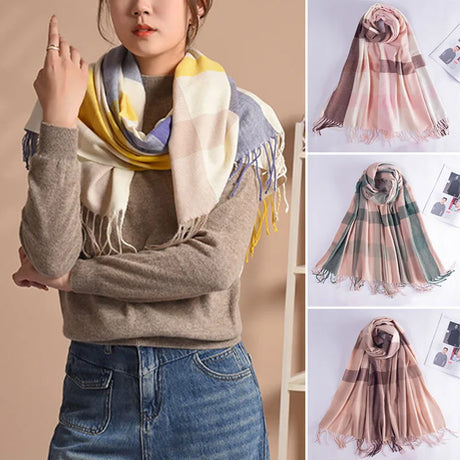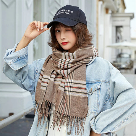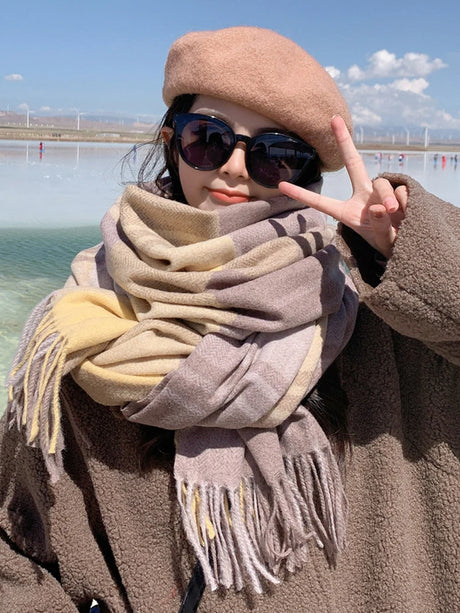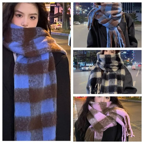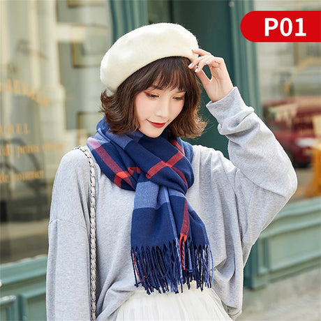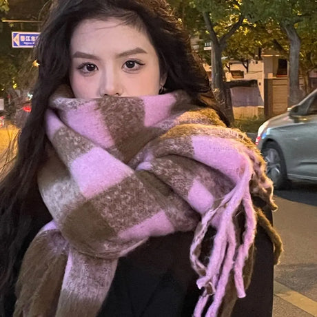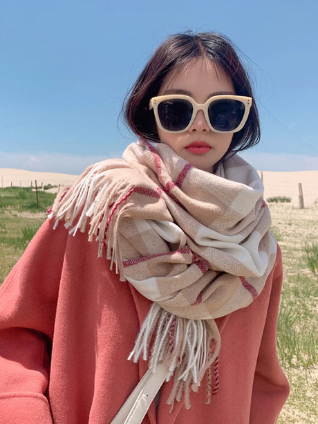Écharpe coréenne en cachemire imitation pour femme, style Preppy, pashmina, écharpe d'hiver