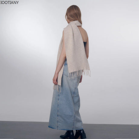 De £3.56Prix unitaire /IndisponibleÉcharpe longue en cachemire et laine pour femme, châle uni avec pompon